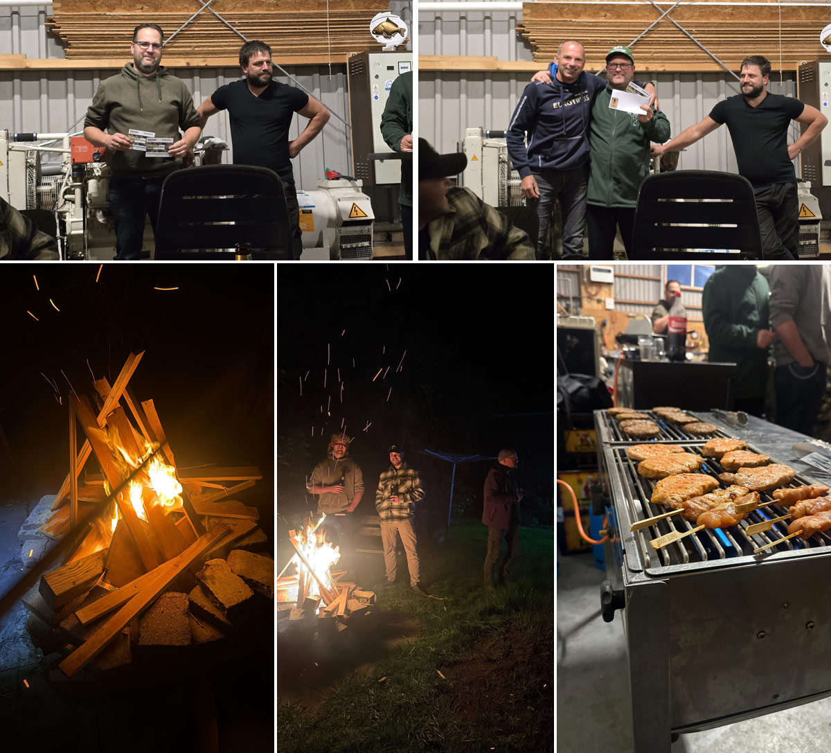 Na de prijsuitreiking werd het tijd om te ontspannen. Dylan nam de leiding achter de barbecue, en al gauw vulde de loods zich met de geur van vlees, stokbrood en gezelligheid. Iedereen liet het zich goed smaken, en de avond bleef nog lang gezellig doorgaan.