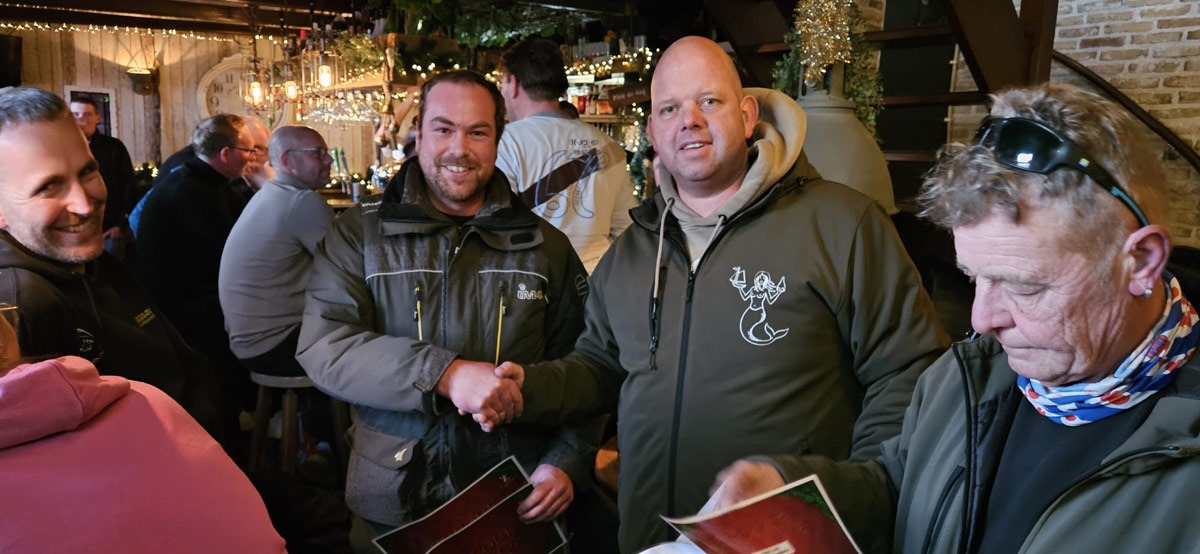 Zaterdag 13 december was het weer zover: onze jaarlijkse Roofvis koppel boot stond op het programma. In de vroege ochtend, rond de klok van 08:00 uur, werden alle deelnemers hartelijk ontvangen bij de Jimbar. De kroegbaas zorgde voor een warm welkom met een heerlijk bakje koffie, zodat iedereen goed voorbereid aan de dag kon beginnen.